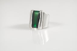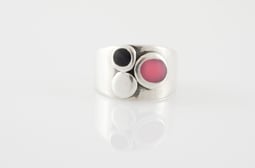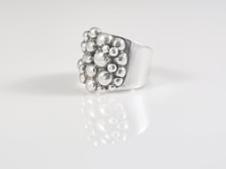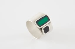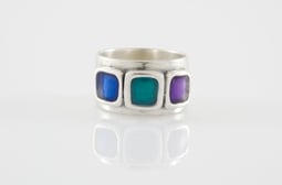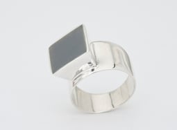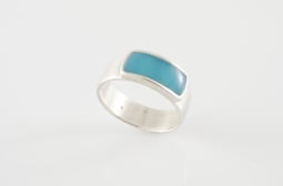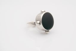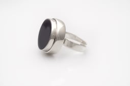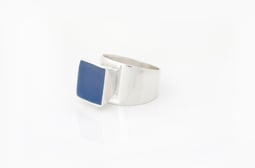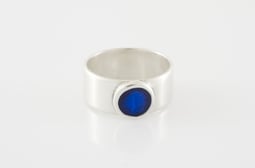 Bold Round Silver Ring With Flat Detail - Dark Blue