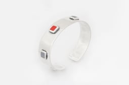 Multicolor Squares and Cirlces Silver Cuff - Blue